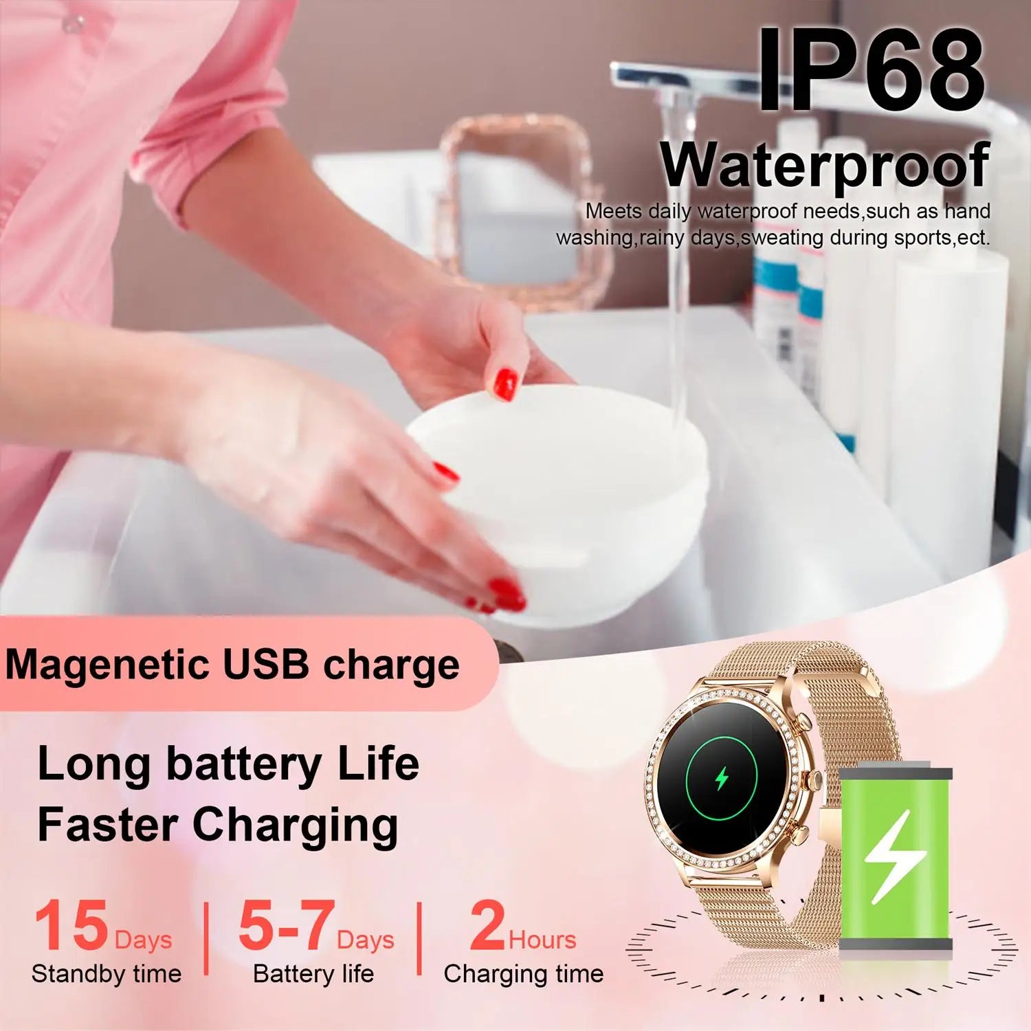 Function: Passometer,Message Reminder,Call Reminder,Answer Call,Dial Call,Remote Control,Push Message,Alarm Clock,Calculators